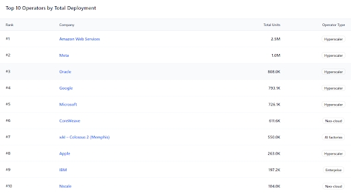 Top 10 Operators by Total GPU Deployment (2025–2027)