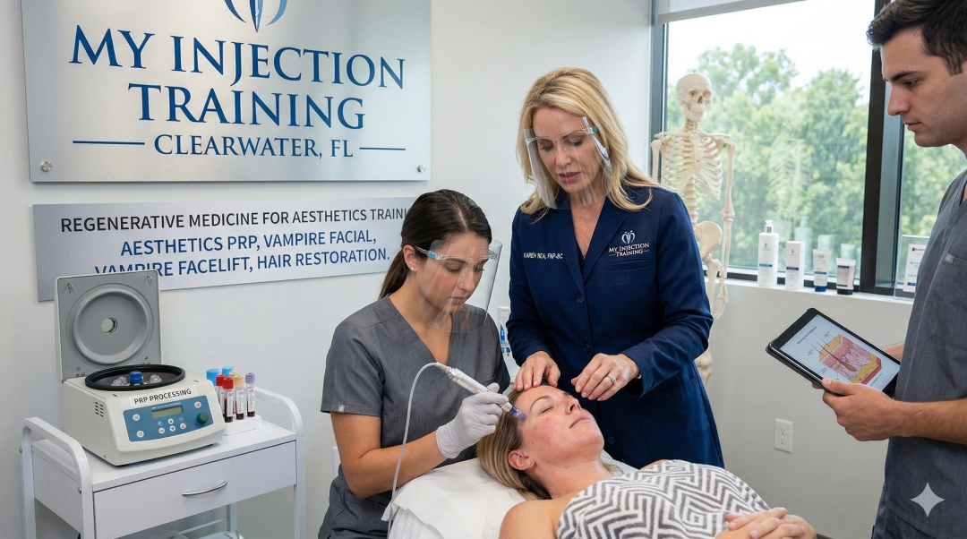 CLEARWATER, FL - April 03, 2026 - My Injection Training, a leader in clinical education for advanced therapies, has announced the expansion of its curriculum to include specialized training in regenerative medicine for aesthetics. Based in Clearwater, the center now offers medical providers comprehensive, hands-on workshops designed to master autologous biologics in the cosmetic space. The updated program focuses on the technical application of aesthetics PRP, including the widely recognized Vampire Facial, Vampire Facelift, and Vampire Hair Restoration protocols. This expansion allows Florida-based practitioners to meet the growing patient demand for natural, minimally invasive rejuvenation techniques.