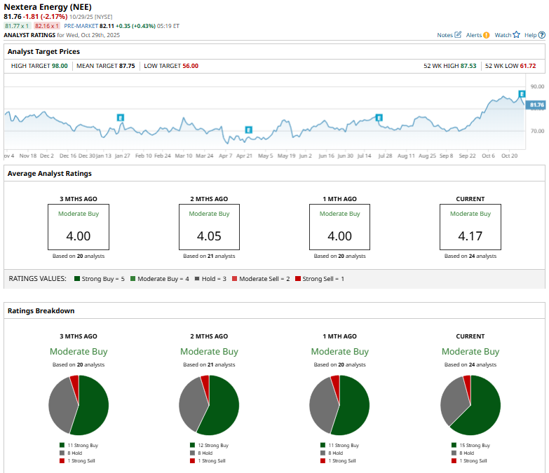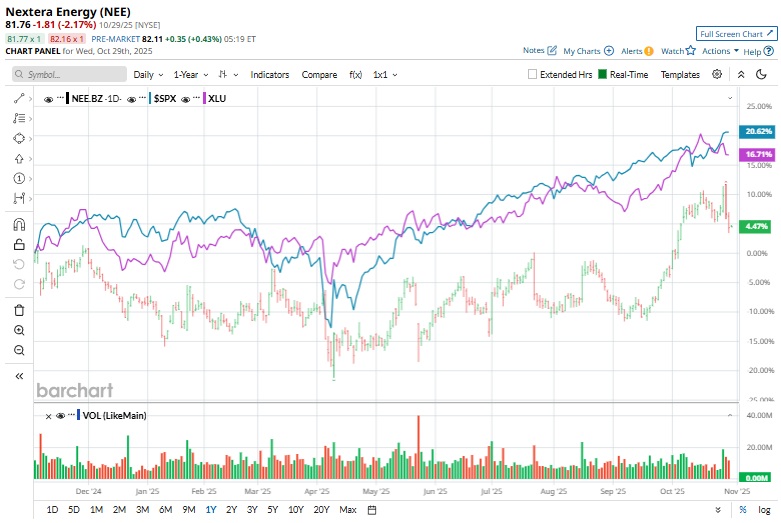 The utilities giant has notably underperformed the broader market over the past year. NextEra’s stock prices have surged 2.8% over the past 52 weeks and 14.1% on a YTD basis, lagging behind the S&P 500 Index’s ($SPX18.1% gains over the past year and 17.2% returns in 2025.