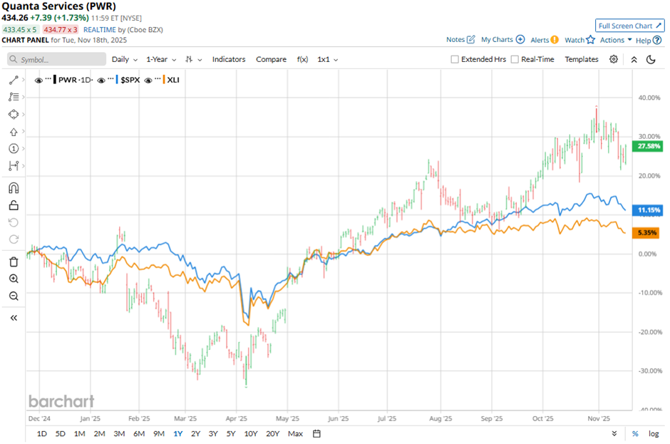 Shares of the Houston, Texas-based company have outperformed the broader market over the past 52 weeks. PWR stock has returned 31.7% over this time frame, while the broader S&P 500 Index ($SPX) has increased 12.3%. In addition, shares of the company are up 36.9% on a YTD basis, compared to SPX’s 12.5% gain.