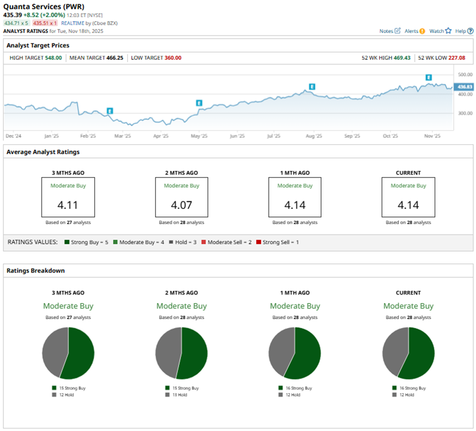 On Oct. 31, Evercore ISI’s Nicholas Amicucci raised Quanta Services’ price target to $480 and reiterated an “Outperform” rating.