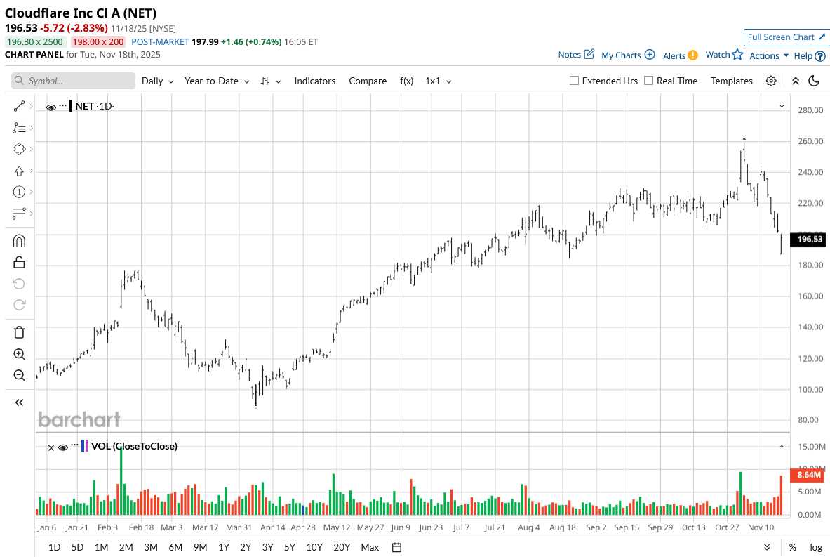 Cloudflare (NET) finds itself in the news again, although this time not because anyone prefers it. Indeed, the company faced an outage on Tuesday that stopped the most popular websites on the internet from being accessible. These websites include X, Zoom (ZM), Canva, Grindr, (ironically) Down Detector, and even ChatGPT. This problem occurred due to an incorrectly set up threat traffic file that caused the software to fail. As a result, connectivity issues were experienced on its global network. Cloudflare lost approximately 3% of its value during the first trading hour and is still down about 3% for the day as of late afternoon trading.