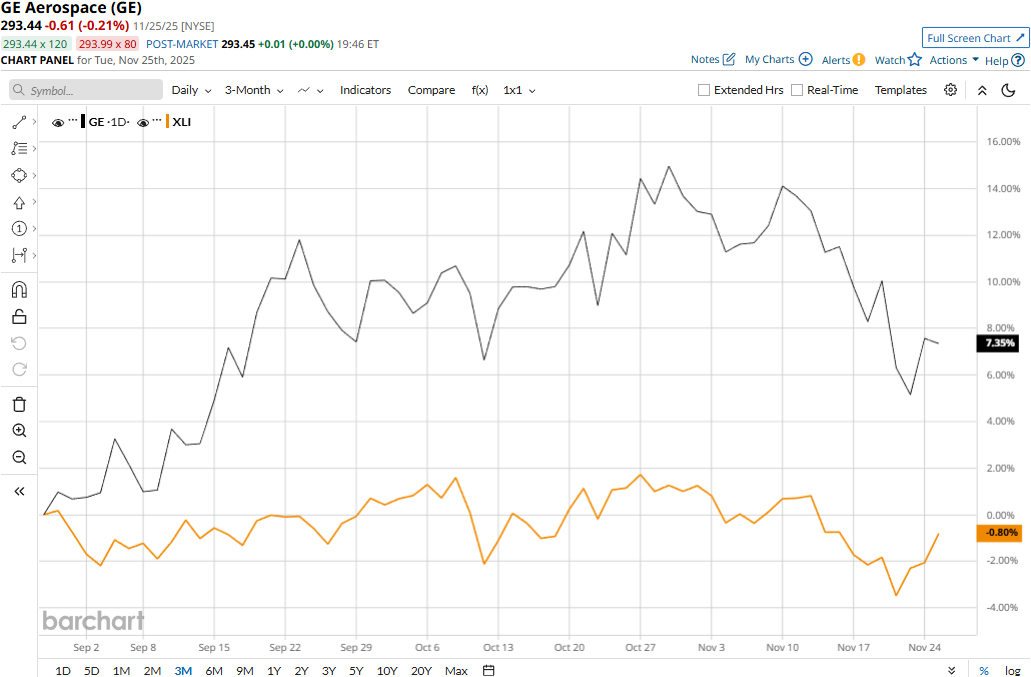 GE stock touched its all-time high of $316.67 on Oct. 28 and is currently trading 7.3% below that peak. Meanwhile, GE stock has gained 10.1% over the past three months, outpacing the Industrial Select Sector SPDR Fund’s (XLI) marginal 20 bps uptick during the same time frame.