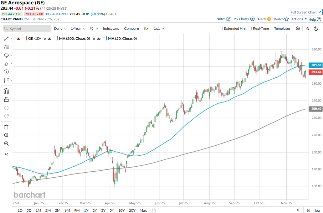GE stock has traded mostly above its 50-day and 200-day moving averages since late April, with some fluctuations recently, underscoring its bullish trend.