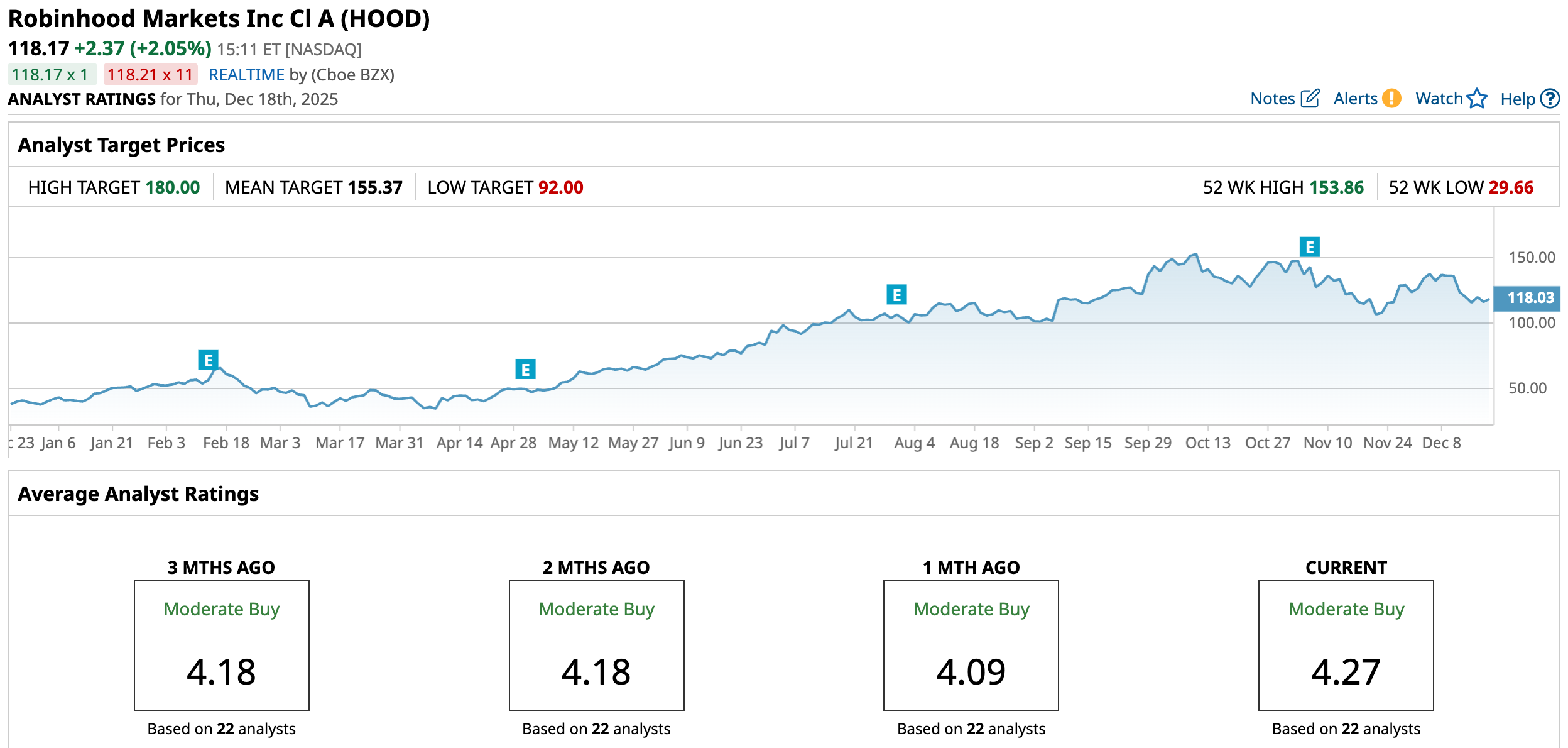 And that optimism is reflected in analysts’ price targets. The average price target of $155.37 implies roughly 31.7% upside from current levels, suggesting continued momentum. At the high end, the most bullish forecast calls for $180, which would translate into a potential rally of as much as 52.3% from here.