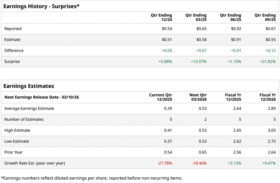 The Palm Beach Gardens, Florida-based company is expected to release its Q4 2025 earnings soon. Ahead of the event, analysts anticipate Carrier Global to report a profit of $0.39 per share, down 27.8% from $0.54 per share in the year-ago quarter. It has exceeded Wall Street's earnings expectations in each of the past four quarters.