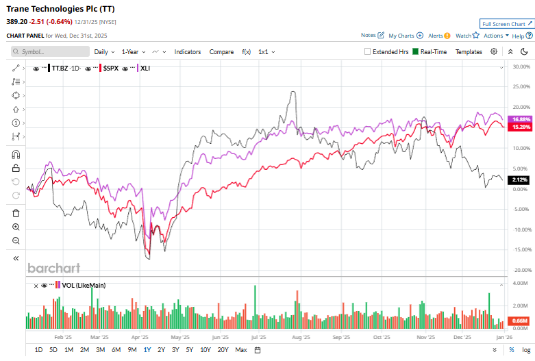 Over the past year, TT shares have increased 5%, underperforming the S&P 500 Index’s ($SPX) 16.4% gains and the Industrial Select Sector SPDR Fund’s (XLI) 17.6% gains over the same time frame.