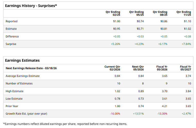 With a market cap of $23.5 billion, General Mills, Inc. (GIS) is a leading global packaged foods company best known for its iconic brands like Cheerios, Pillsbury, Betty Crocker, Häagen-Dazs, Blue Buffalo, and Nature Valley. Headquartered in Minneapolis, Minnesota, the company operates across North America and international markets, offering a wide portfolio of cereals, snacks, yogurt, baking products, frozen meals, pet food, and more. The company is slated to announce its fiscal Q3 2026 earnings results soon.