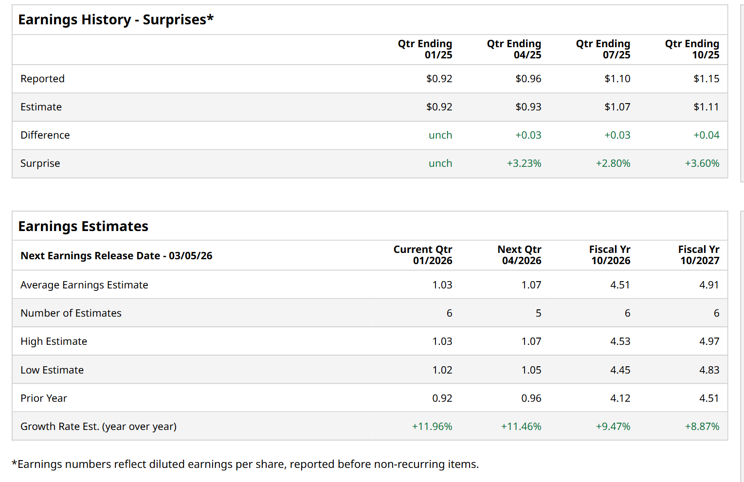 Ahead of this event, analysts expect this healthcare company to report a profit of $1.03 per share, up 12% from $0.92 per share in the year-ago quarter. The company has met or surpassed Wall Street’s bottom-line estimates in each of the last four quarters. Its earnings of $1.15 per share in the previous quarter topped the consensus estimates by 3.6%.