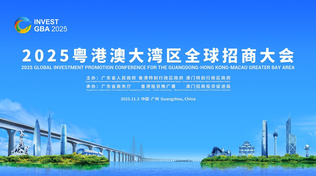 Guangzhou - The 2025 Global Investment Promotion Conference for the Guangdong-Hong Kong-Macao Greater Bay Area (GBA) will kick off on November 3 in Guangzhou. Building on the theme of "Investing in the Greater Bay Area, Co-creating a Bright Future," this year’s edition focuses on the GBA’s new positioning of "One Point, Two Places." Leveraging the momentum of Guangdong, Hong Kong, and Macao jointly hosting the 15th National Games, the event aims to create a world-class investment brand that showcases the economic vitality, innovative drive, regional charm, and investment potential of the GBA, while deepening cooperation with major global bay areas and economies along the "Belt and Road".