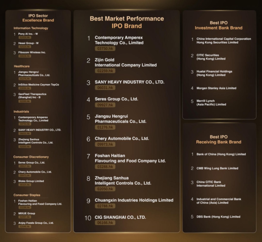 The "Best IPO Investment Bank Brand" award focuses on the number of projects and the total fundraising amount sponsored by the institutions. Among the top five brands, three are Chinese institutions and two are international institutions. This illustrates a "dual-track" landscape where Chinese and international firms each excel, highlighting the internationalism and inclusivity of Hong Kong as one of the world’s most open financial markets.