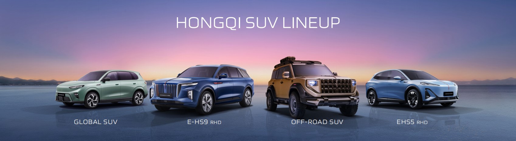 The all-new overseas SUV lineup unveiled includes: Hongqi Offroad, Hongqi Global SUV, E-HS9 Right-Hand Drive (RHD) version, and EHS5 available in both Left-Hand Drive (LHD) and Right-Hand Drive (RHD). Covering outdoor off-roading, urban commuting and business reception scenarios, the lineup forms a product system featuring synchronized LHD/RHD deployment, parallel development of electrified models, and coordinated intelligent evolution.
