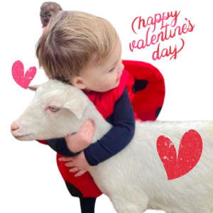 "I'll never forget the look on a young woman's face when she opened her front door and was greeted by our beautiful white goat, Posey. We had decorated her with red roses and pink hearts to deliver a special Valentine's Day message from her boyfriend. Talk about making a big impression!! She couldn't believe he had hired us to deliver her a bouquet of a dozen roses as well chocolates and a personalized "You're The G.O.A.T." Valentine's Day card! She said this animal-gram idea was the best Valentine's Day gift ever." The great news is, it's not only for Valentine's Day, but year-round!