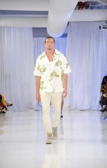 The collection featured a versatile sustainable Caribbean wardrobe, including island shirts, kaftans, dresses, robes, tote bags, and jewelry. The pieces are accented with natural elements and native craftsmanship, positioning the collection as essential Resort Wear for tropical living and modern city wear.