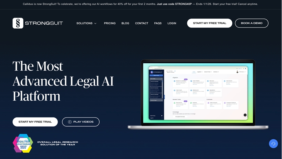 StrongSuit, formerly Callidus Legal AI, today announced the launch of StrongSuit 2.0, a major new release of its AI-powered litigation platform, alongside being named “Overall Legal Research Solution of the Year” in the 2025 LegalTech Breakthrough Awards program.