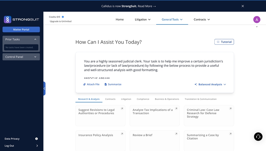 - End-to-End Workflow Enhancements - Beyond marquee features, StrongSuit 2.0 ships dozens of improvements across discovery, research, motions, drafting, and review all designed to reduce repetitive work and surface the most important information faster.