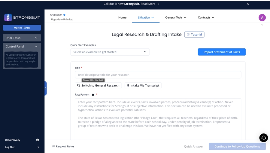 Yet many practitioners remain cautious, concerned about opaque AI behavior, hallucinated citations, and tools that feel disconnected from real-world workflows. StrongSuit was built from the ground up to address those concerns: