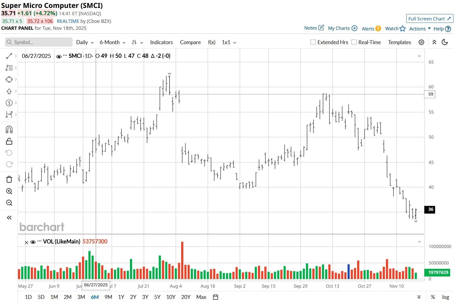 SMCI stock has been in a sharp downtrend ever since it reported the preliminary financials for its Q1. The AI server specialist is down more than 40% versus its October high.