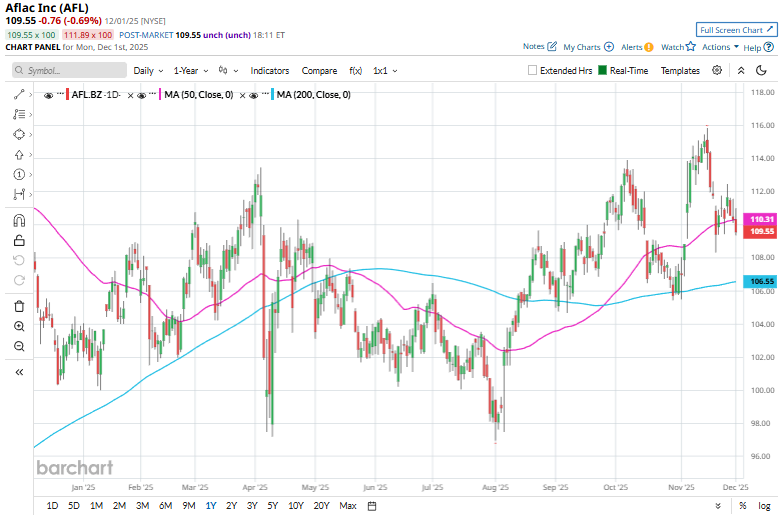 When compared to its peer, Aflac has outperformed MetLife, Inc.’s (MET) 6.8% dip in 2025 and 13.5% plunge over the past 52 weeks.