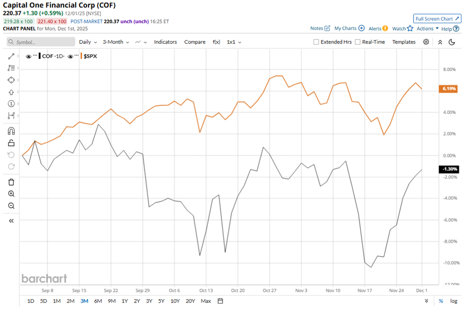 Shares of the McLean, Virginia-based company have fallen 5.2% from its 52-week high of $232.45. Capital One Financial’s shares have decreased 3% over the past three months, underperforming the broader S&P 500 Index’s ($SPX) 5.5% gain over the same time frame.
