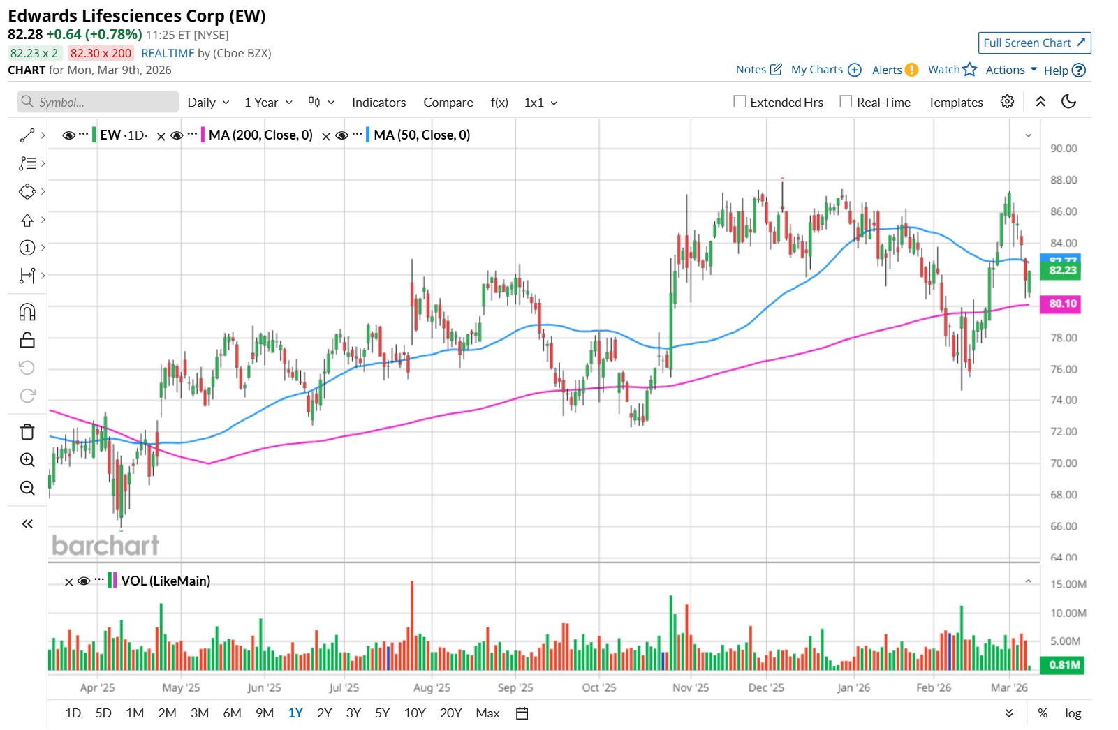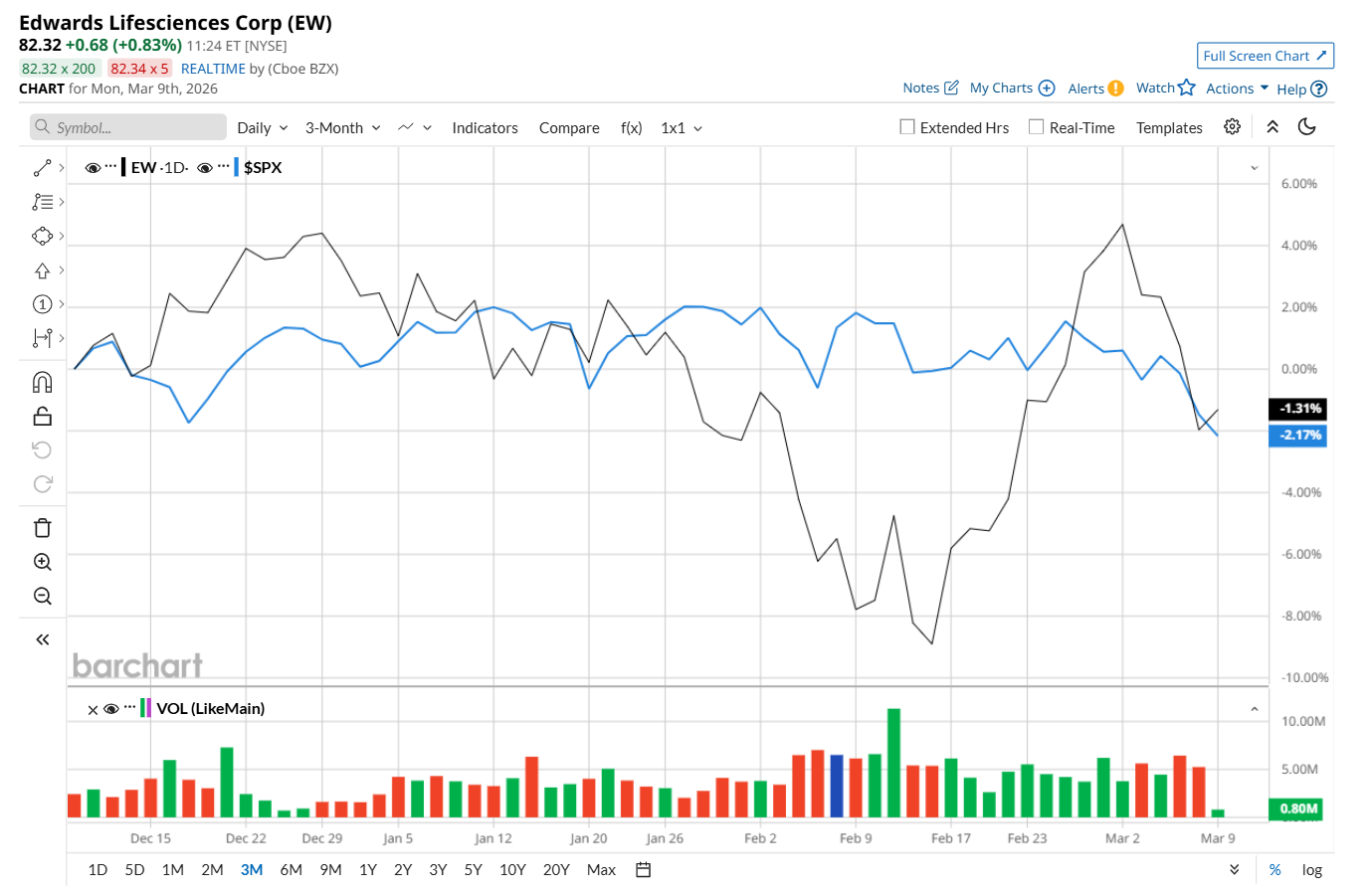 This healthcare company has dipped 6.6% from its 52-week high of $87.89, reached on Dec. 5, 2025. Shares of EW have declined 1.8% over the past three months, outperforming the S&P 500 Index’s ($SPX) 2.4% drop during the same time frame.