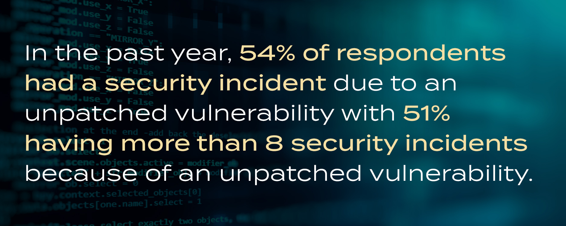 - In the 12 months prior to the study, 54 percent of respondents suffered a security incident due to an unpatched vulnerability; 51 percent experienced more than 8 incidents