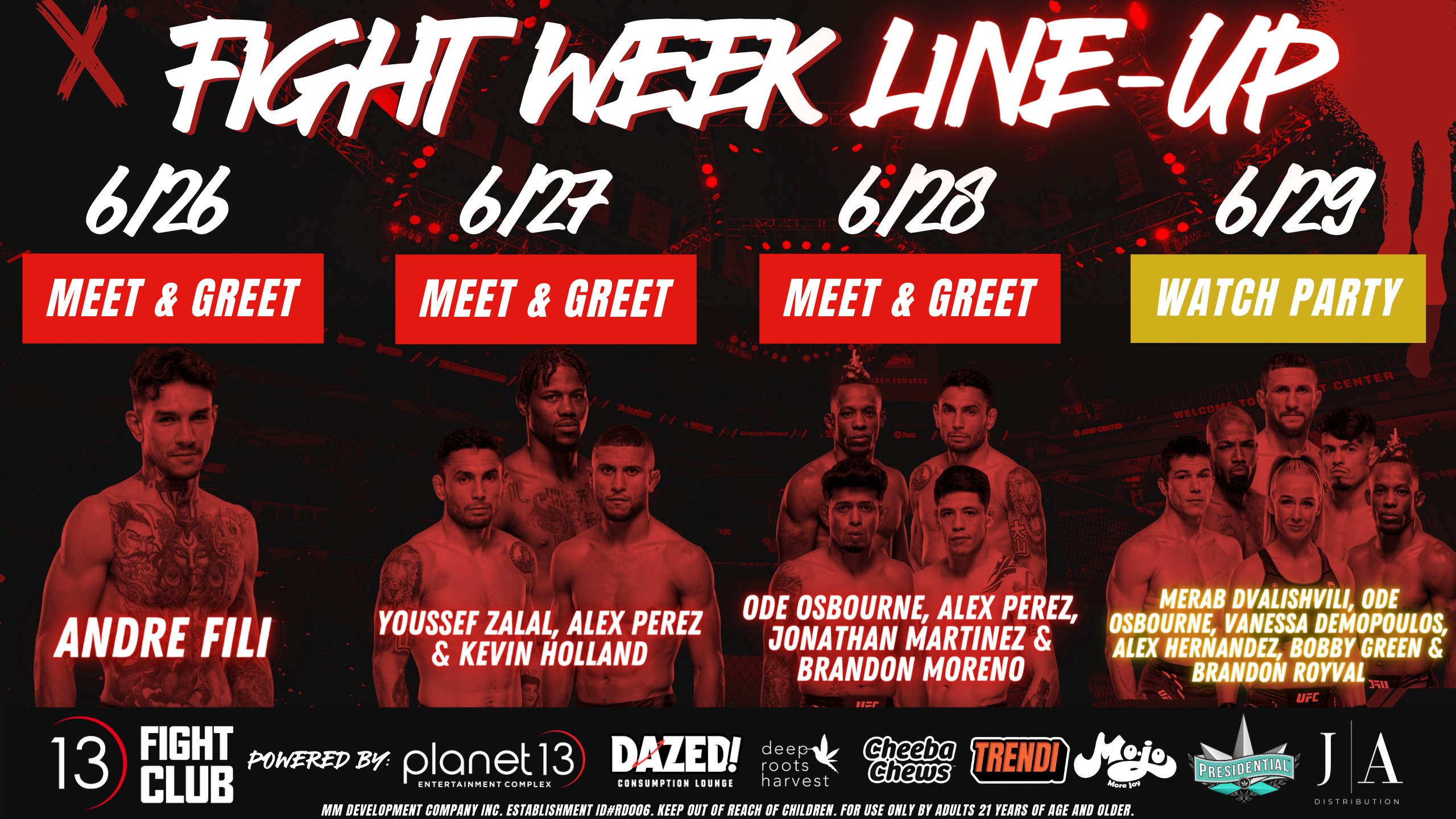 Fighter Meet & Greet 6 p.m. – 8 p.m. at the Planet 13 Plaza
